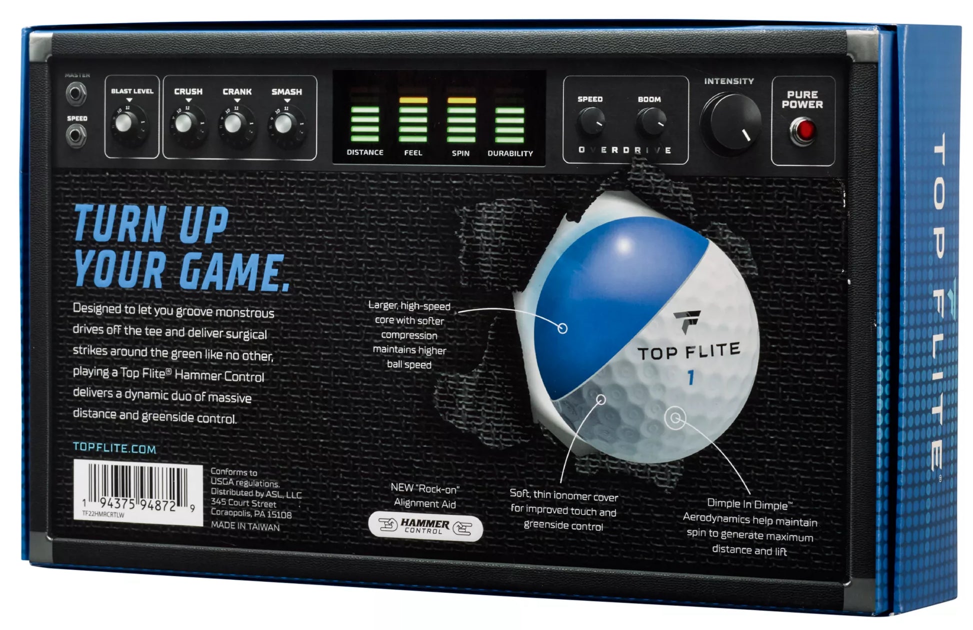 - Soft, Ionomer cover provides elevated greenside control and improved touch